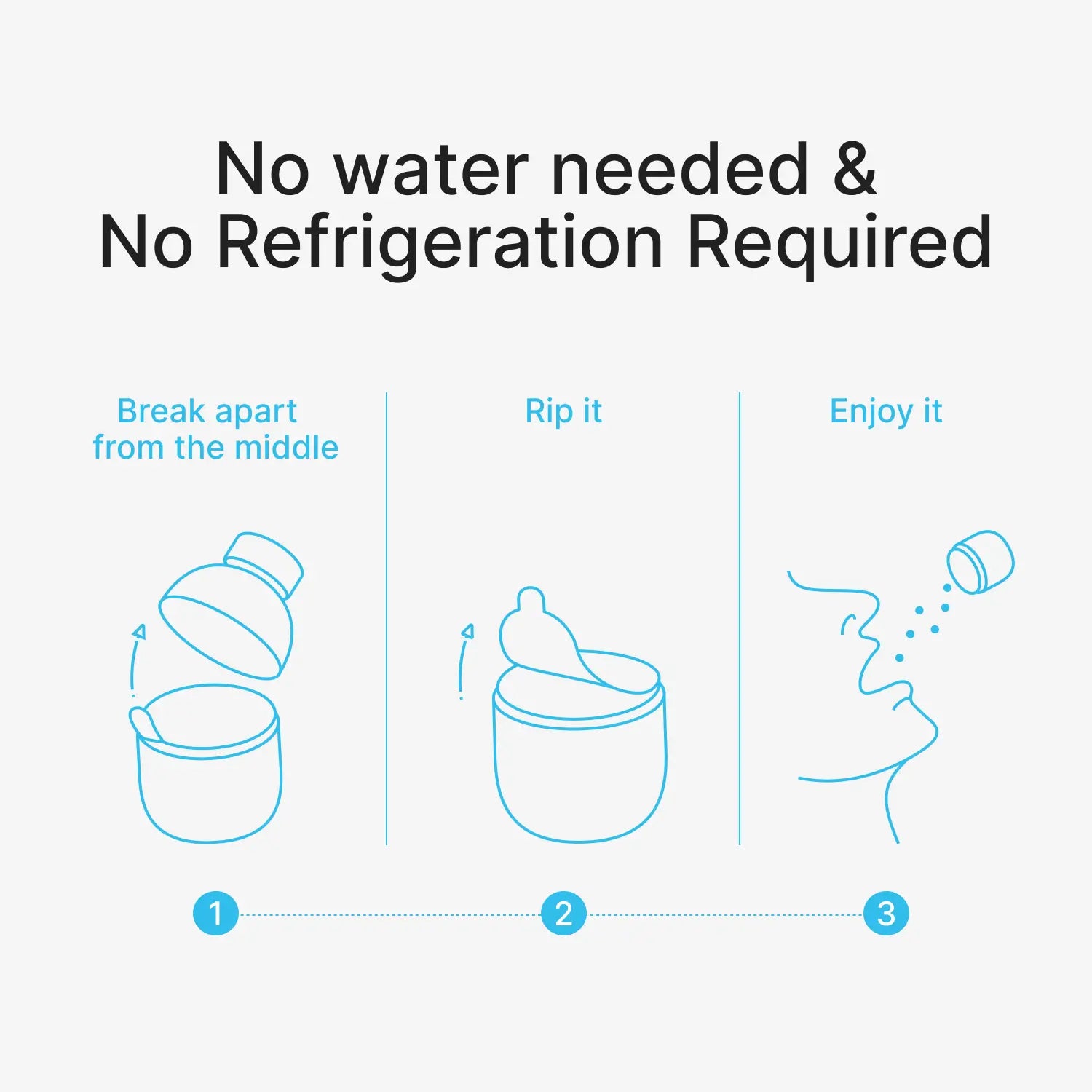 Our innovative active chamber bottle blocks light, water, and oxygen. Paired with a premium aluminum seal, it protects the probiotic cultures from moisture, light, and oxygen, extending shelf life and ensuring the stability of the product.